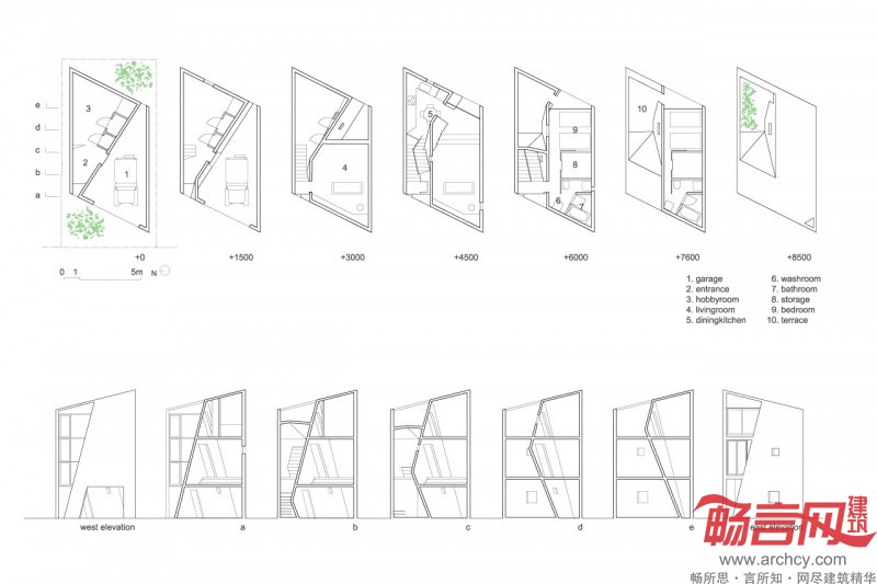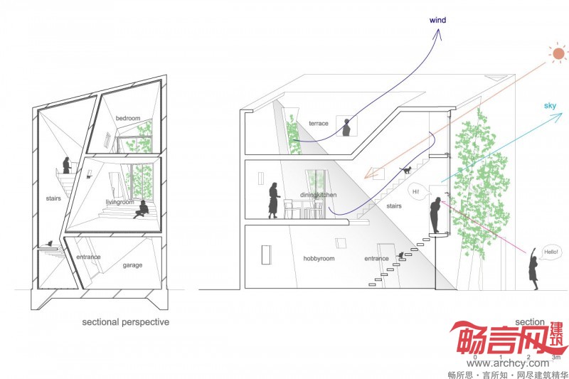 “通常,要设计一座房子,我们往往会设计一个矩形空间,然后再将这个空间划分为不同的功能区域,这样设计出来的房子总是大同小异,给人很单调的空间感受,”设计师说:“我们就是想要避开传统的设计模式,打造一座结构上合符理性、空间上具有多样性的房子。”