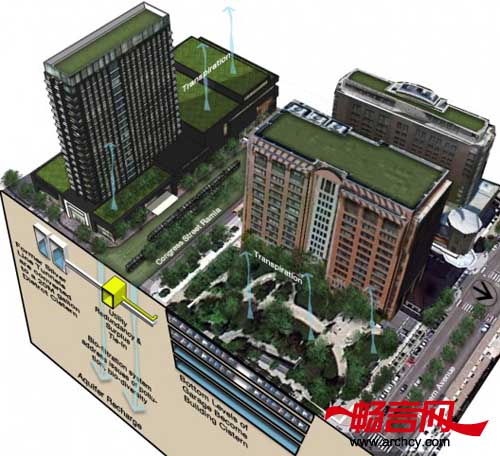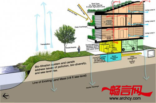 我们的环保策略包括将现有的巴士隧道改造成为一个能容纳两千万加仑的蓄水池,此外,我们还有一个海岸修复计划:在运河区的住宅开发地块处,我们计划将花岗岩海堤移除,恢复这里地表的渗透性,并通过重建的湿地为地下含水层补水。