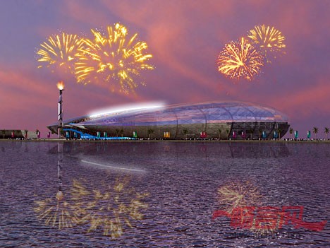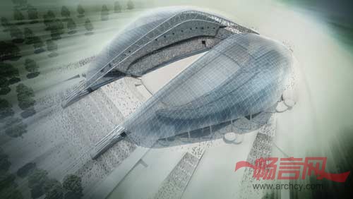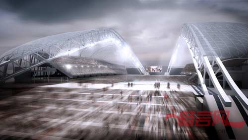 体育场位于索契奥林匹克广场,多层台阶引导观众前进,并通向墩座。光滑的扶壁上构架起一座巨大的屋顶。