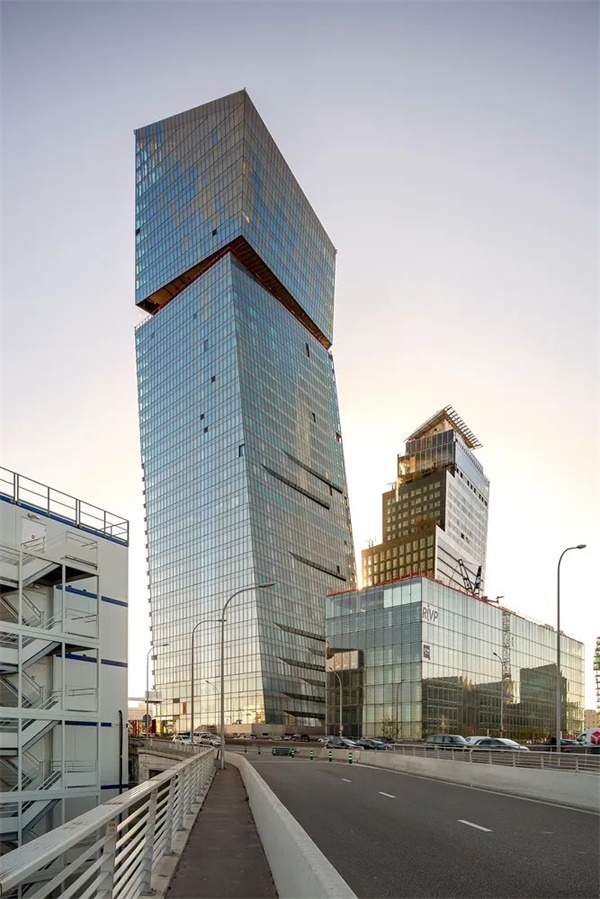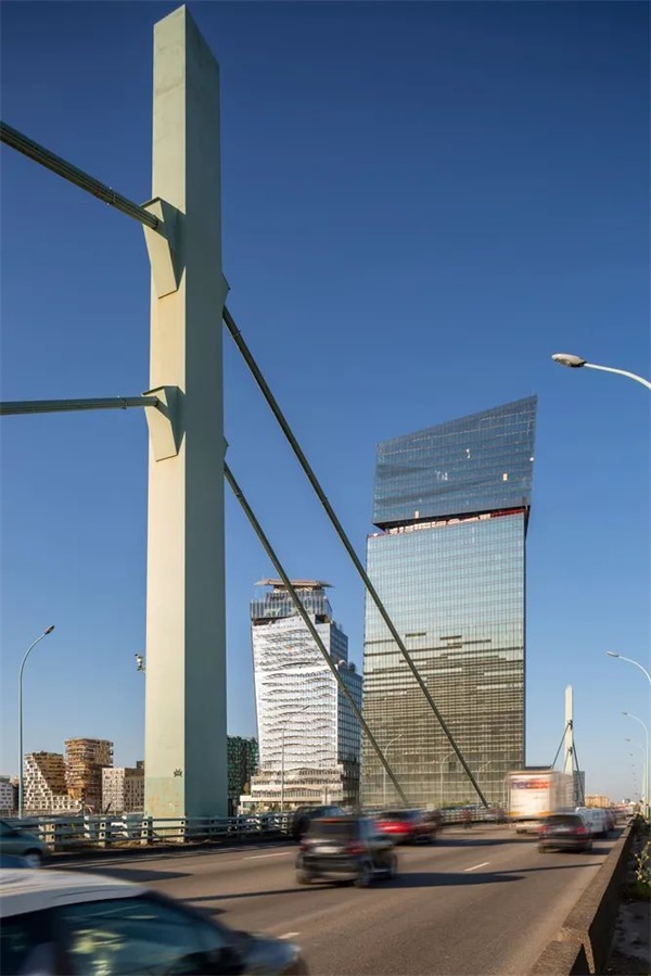 项目在设计时考虑到了三个方面:法国大道的视角、毗邻通往城市中心的铁轨河的位置、毗邻巴黎环形大道的位置。从法兰西大道的角度来看,该地块不具有地标的地位。从法国国家图书馆的人行道上看不到它,所以建筑师设计时将其稍微倾斜,使得塔楼可以很容易的进入人们的视野。