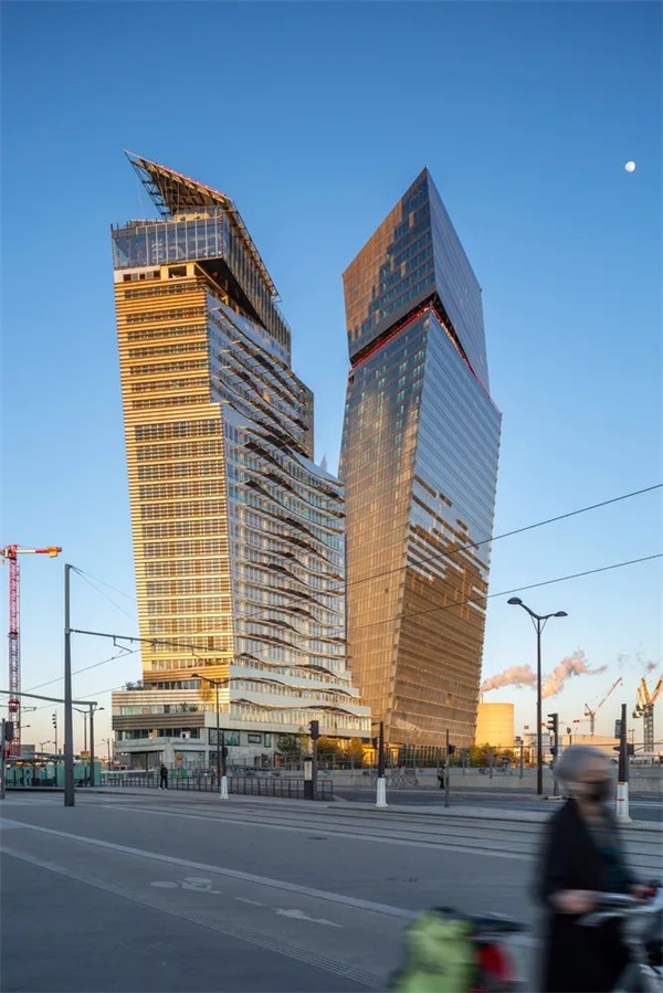 由建筑师让·努维尔设计的巴黎 Tours Duo 塔楼已竣工,摄影师 Paul Clemence 拍摄了一组该建筑的完工照片。这两座高耸的塔楼是一个混合功能建筑,场地位于法国首都高士区塞纳河边的一个前工业用地上。现在,作为一个“顶级商业地产项目”,包括 Philippe Starck 设计的八层酒店,办公空间、零售空间、顶层餐厅酒吧、花园和绿色露台,以及一个通往河边的新起点。这一对塔楼凭借其变化的姿态、微妙变化的体量和波纹状的 brise soleil 系统而独具一格。