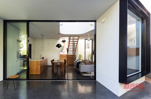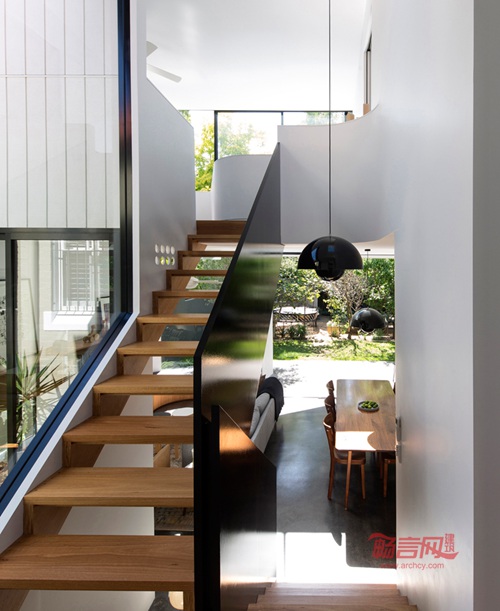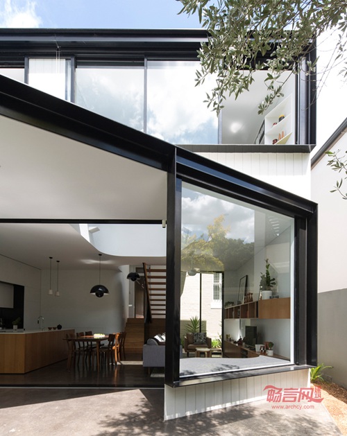 建筑师Christopher Polly为澳大利亚悉尼市一座联邦风格的住宅设计了一个100平方米的增建房。这座增减房被称为“迎风展开的房子”,轻型建筑体向外延伸,形成了一个错层空间,增强了视觉上与周围环境的联系。