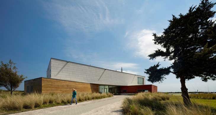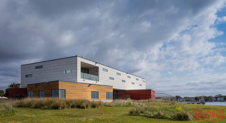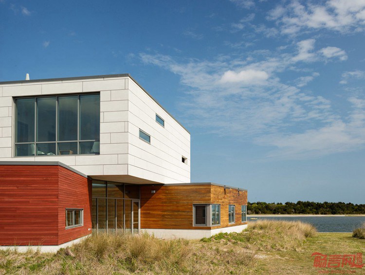 杜克大学研究中心采用了解构式体块设计,旨在防御洪水的危害。Dr Orrin H Pilkey研究实验室坐落于Pivers岛南端,该岛位于北卡罗来纳州Beaufort。建筑属于杜克大学Marine实验园区,该园区于20世纪30年代建成。实验设施造价有限,包含的设计方案重点解决飓风、海平面升高和暴风雨等问题。