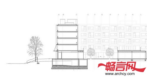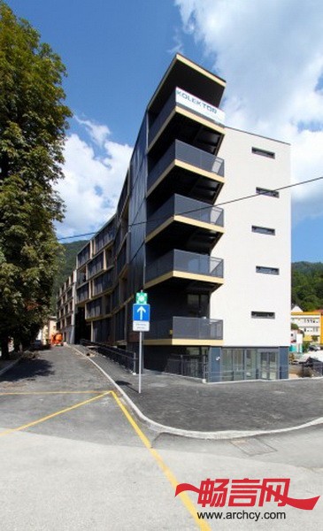 根据楼层的不同,设计师将公寓楼分成三部分: