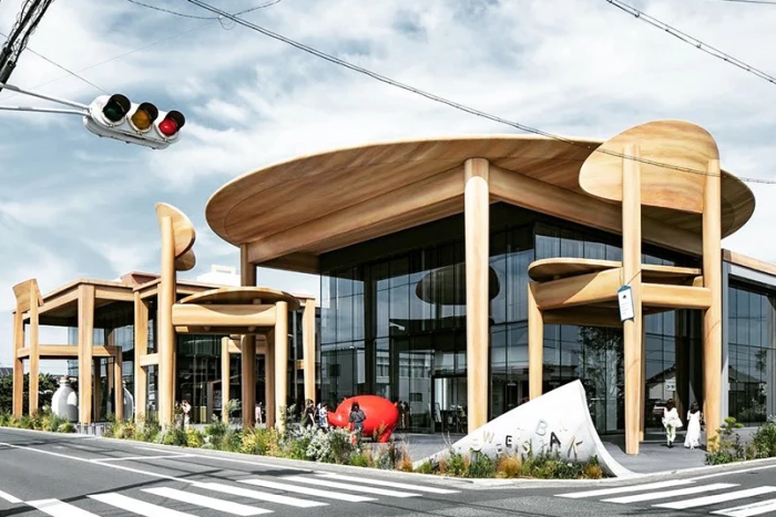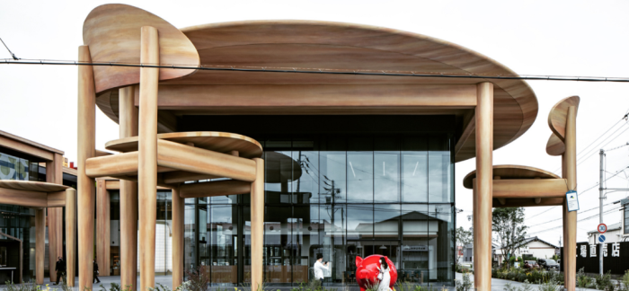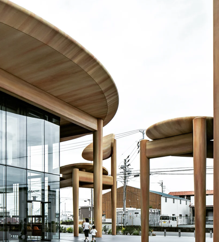 日建设计公司(Nikken Sekkei)为位于日本滨松市的总部的日本甜品公司Shunkado设计了一套以木椅和桌子为结构的建筑。这个异想天开设施名为糖果银行,设有办公室、商店、餐厅和咖啡馆,以及一对玻璃体积内的银行。