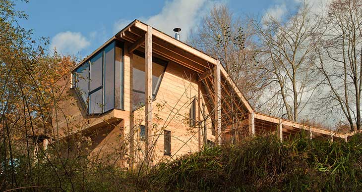 Invisible工作室设计了位于英国伦敦Hooke公园管理员住所。这是一座带有夹层的一层住宅,几乎完全的木质结构,架高在地面上。从设计开始阶段,项目就秉承可持续性的理念,施工和材料采购相结合,配合最新的保温技术,保证建筑的高效节能。