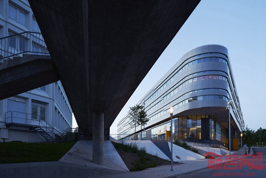 项目位于斯德哥尔摩Kista,是瑞典最新的数字创新中心。项目由Scheiwiller Svensson建筑事务所设计,涵盖科研、教育、艺术和商业功能。Nod作为开放公共凭条,吸引大小商业机构入驻,结合斯德哥尔摩大学计算机信息科学系教育资源。设计师表示,项目挑战在于用一致的空间规划科学和社会界面。