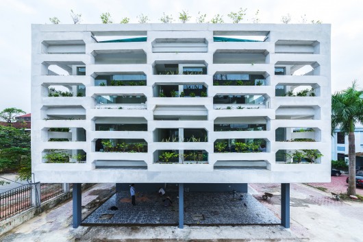 SRDP-IWMC办公楼位于越南Ha Tinh市,由H&P建筑事务所设计。项目面积1307平米,工程造价50万美元。项目所在道路设有多个政府办公楼,建筑成为国际农业发展基金办公总部。由于预算限制,项目使用了原有设施的办公家具。项目考虑因素包括越南当地气候变化情况以及快速城镇化对农村地区的影响。项目理念综合了定耕以及定居,旨在达成三个目标:标志性外观、低成本和快速施工。
