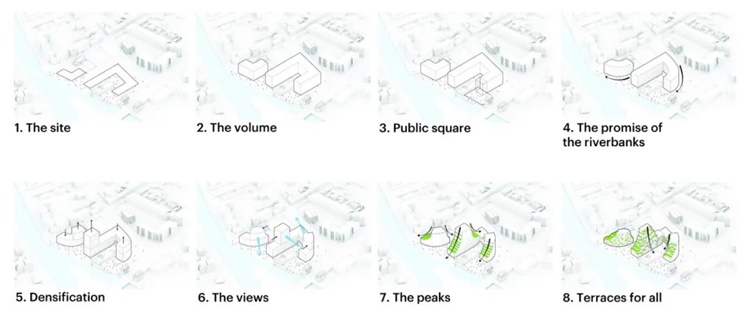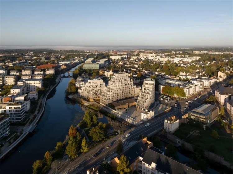 MVRDV与ALL联手为房地产开发商Groupe Giboire设计的Ascension Paysagère住宅区,已于近日完工。该住宅区位于伊勒河与维莱讷河交汇处,附近有一花园Jardin de la Confluence,是雷恩市中心与郊区的过渡地带。