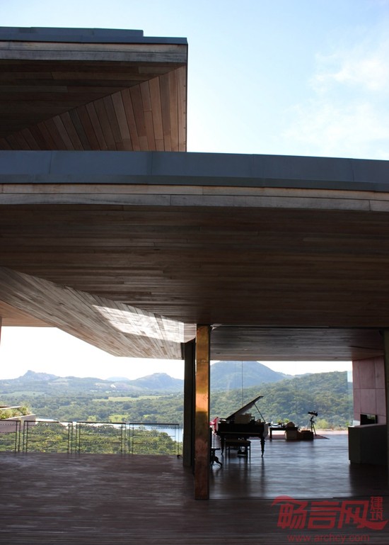 在东非的一处岩石山坡上,有一座像三明治一样的房子,这是为一名音乐家打造的住宅兼工作室。