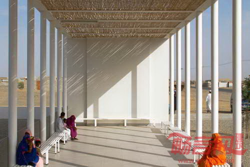 项目除了采用较小门窗设计外,通过包括采取诸如压低砖瓦储藏室在内的传统冷却方法,起到大规模遮阳、增大散热表面积的效果。医院总体外形遵从烟囱效应,并采用防风罩增强空气流动,减少灰尘进入。