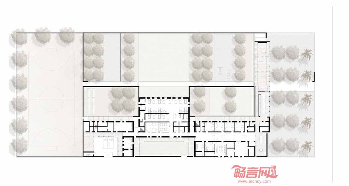 Tamassociati建筑工作室与意大利非营利性组织Emergency合作,共同创建了红海州儿科医学中心。医院旨在搭设特权机构和必要组织之间的桥梁。一层的医院空间包含18个床位、三个手术区域以及深度护理区。医院围绕庭院建造,包含一系列连贯空间,采用多种被动通风手段。