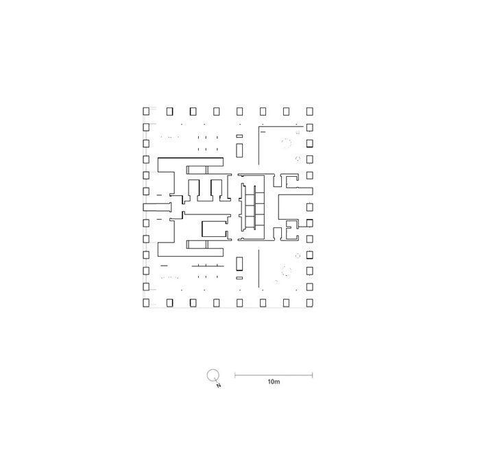 塔楼的立面设计还充分考虑了周边历史建筑的既有肌理。立面所用混凝土混合物内包含的不同物料均可在塔楼相邻建筑物的砖砌外墙中找到对应物。同时,建筑师还在抛光预制混凝土板和柱子网格模数的处理上参照了传统的技术手法,使新建塔楼能更好地融入该项目所处的街景语境中。