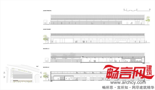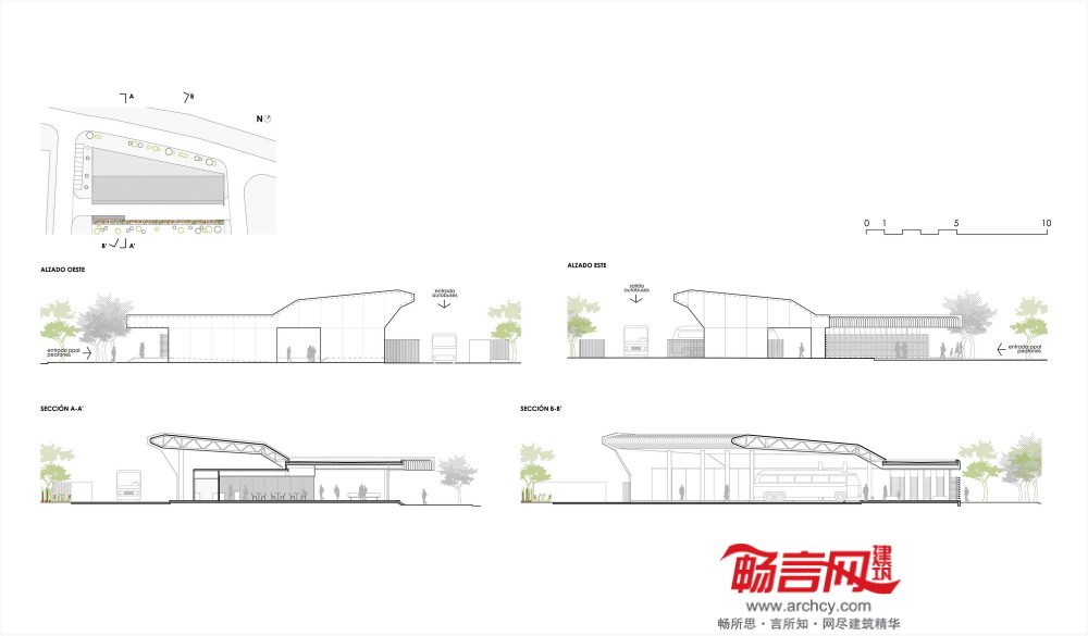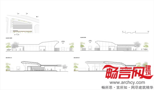 建筑分为三大不同区域——公交区、室内候车区和室外候车区。