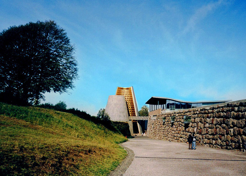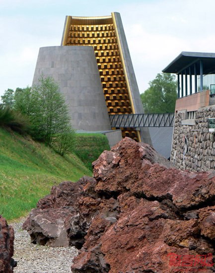Hans Hollein设计了法国武尔卡尼亚火山欧洲公园。设计师表示,《但丁的地狱》影响了这一地中海设计风格。项目坐落于火山密布的法国Auvergne地区,是一个半地下的地质公园。公园拥有微缩人造火山、喷水的火山口和地下影院。Hollein曾经接受过密斯·凡德罗、赖特和诺依特拉等建筑大师的教导,最终成为后现代运动的先驱。