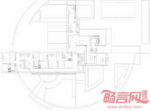 为了满足这一要求,DAHL&GHG建筑事务所将房间布局处理成十字形的平面,周边是半圆形的院墙。