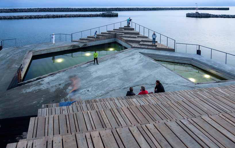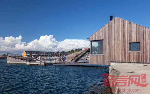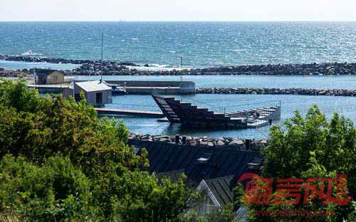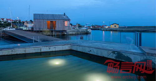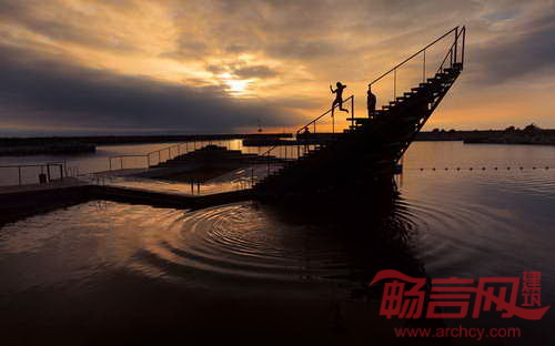 丹麦Bornholm岛位于波罗的海中央,曾经以渔业文明,现在已成为游人趋之若鹜的避暑地。瑞典WHITE建筑事务所受委托建造一座当地地标,成为地区未来活动催化剂。该项目名为“繁忙港口浴场”,由一系列花岗岩防波堤围住的天然浴池构成。这些斜面屏障阻挡部分视野,并限制人们在开放海域游泳。漂浮混凝土结构包含两个楼梯基础,创造出不同深度的座位。主楼梯旁设有两个跳水台,人们可以在沿码头的平台上欣赏广阔景观。