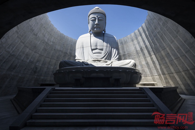 项目位于日本北海道,建筑师安藤忠雄设计了以巨大的佛像为中心的真驹内泷野陵园。设计师重点在于突出佛像的尺度,大佛已经有15年的历史。。新干预项目以塑像为中心,从山外角度,只能看到佛像的头部。为了看到大佛的身体,游客需要进入这一40米长的隧道。设计师表示,我们希望创造生动的空间序列,并提升大家对于雕像的期望。