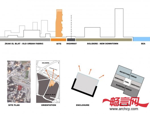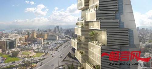 该项目毗邻贝鲁特的城市交通要道,坐落于两条城市道路的交叉点,它的设计是住宅规模、建筑元素多样性、最佳视野和良好布局的集合体。建筑的每个部分像一个个玻璃盒子一样向上叠加起来,这样最大限度地增加了住宅的可建面积。