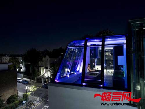 因为需要在两幢相邻的建筑顶上建造一个引人注目的居住空间,所以Richard Hywel Evans Architects(Studio RHE)设计了一座玻璃天桥将它们连接在一起。