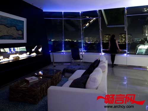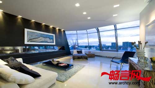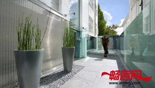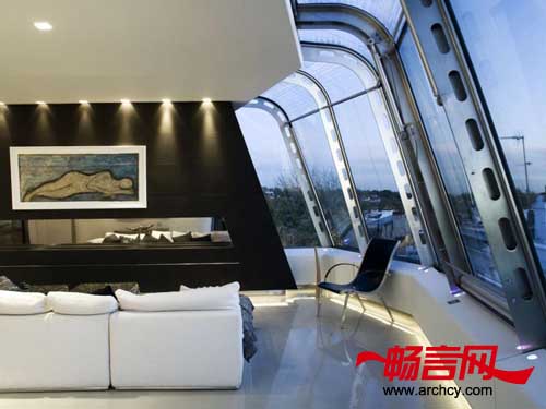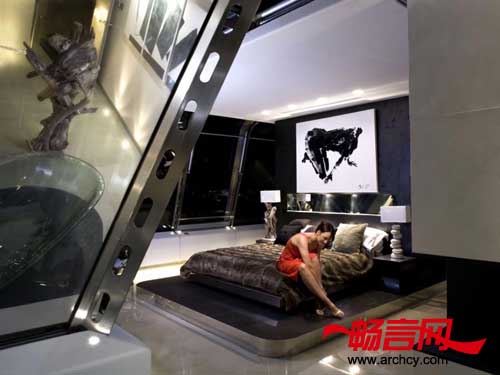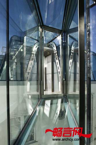 最后一步是安装一部玻璃电梯,可以直接到达位于两个天台上的公寓里。