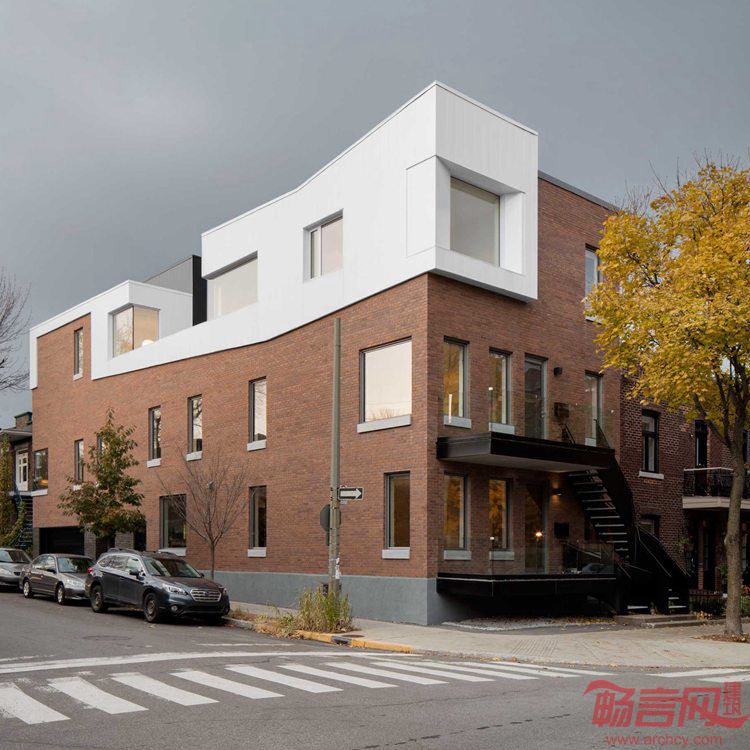 加拿大Naturehumaine公司完成了蒙特利尔一座1920年代住宅的翻新,为砖砌建筑添加了白色的二层空间。这座当地事务所对这座位于Rosemount La Petite-Petrie的多层住宅进行了彻底改造。二层原有的砖砌结构被拆除,以斜角度的玻璃和白钢结构取而代之,与红色基调形成对照。