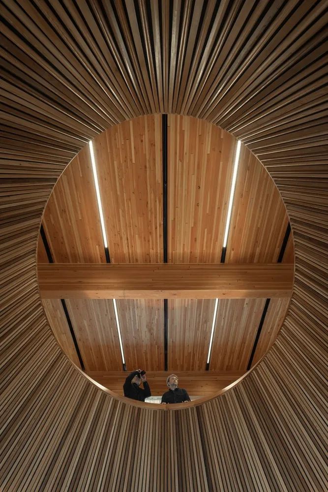 受挪威文化启发的建筑形式,Commons 的设计借鉴了挪威文化元素。迎宾顶篷提供了一个受保护的、醒目的入口,其设计灵感来源于著名的船只设计,包括来自里瑟尔的 Colin Archer 号船和 1825 年首次登陆美国的 Restauration 船。木质框架和混凝土基座让人想起挪威传统仓库“stabbur”的石基。混凝土纹理的灵感来自挪威国家政府大楼(又称 Y 型大楼)的建筑师 Erling Viksja 的作品,内部的穹顶类似于萨米人的帐篷,被称为“Lavvu”。新建筑的公共接待大厅和活动空间以高耸的木质顶棚为标志,与周边公园舒适而隐蔽的室外房间相映成趣。灵活的上层画廊,包括最先进的设施和一个新的数字制作工作室,为游客提供了探索丰富的文物和艺术品收藏的空间。