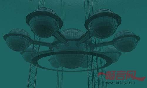 这个体系由中央控制球和八个独立的生态球组成,中央控制球用于提供电力,并控制各个生态球中的环境参数,生态球中则由人、动物、植物和淡水构成生态循环系统。