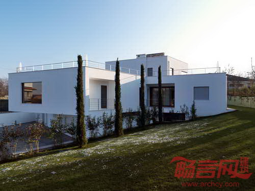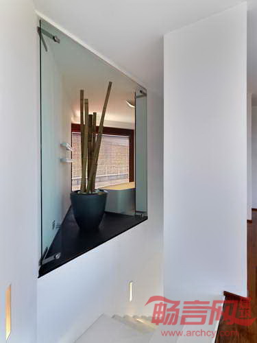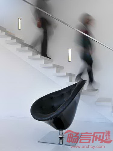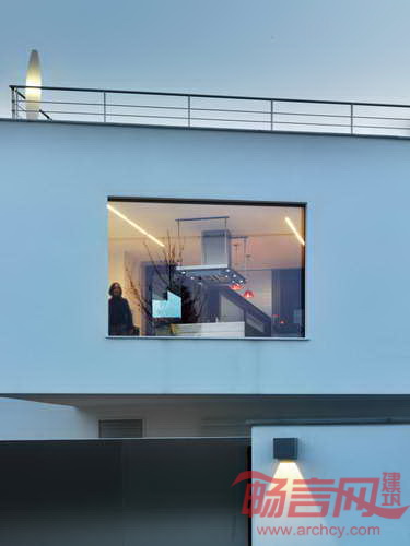 一层供房主使用,包含了一个宽敞的房间、更衣室和浴室。顶层包含大阳台,外带放松休憩的花园。夜幕降临时,建筑显示出量感深度,明亮的光线从建筑开口散出,明暗反差得以凸显。