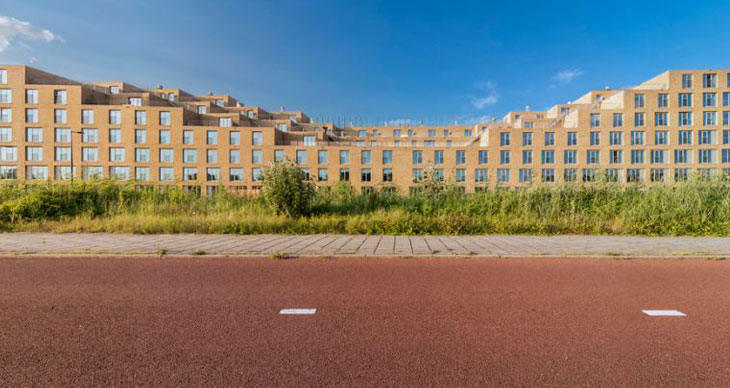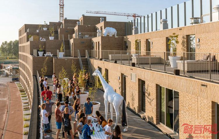 Studioninedots公司设计了阿姆斯特丹Smiley Zeeburgereiland公寓楼。该项目包含364套学生公寓,于今年完工。项目位于Piet Hein隧道前,附近区域的学生人数近年逐渐递增。路人可以注意到,学生可以在这座标志性建筑露台上沐浴阳光。设计师有效地利用户外空间,使之促进集体文化,并增进建筑的活力。同时,将阳台从原本静寂的北侧移到建筑的屋面上。