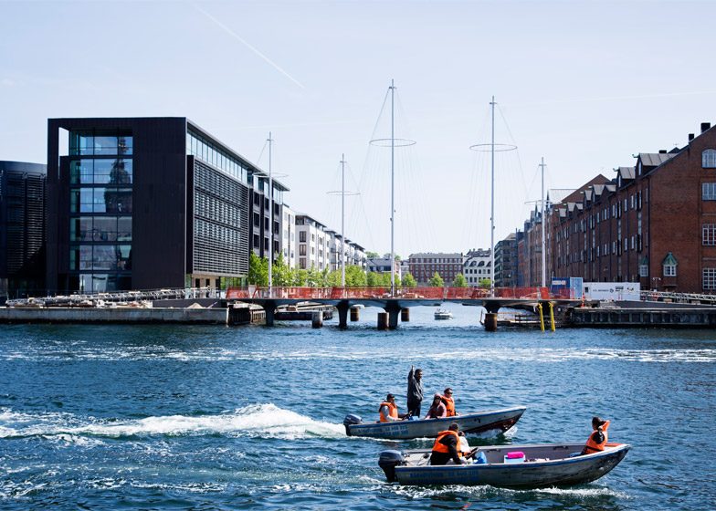 丹麦艺术家Olafur Eliasson设计了跨越哥本哈根运河的桥梁,标志是具有如同帆船桅杆般的设施。环形桥梁架设在Christianshavn运河上方,连接附近地区和另一端的Appleby广场。桥梁共有40米,是步行桥,由五个相互连接的环形平台组成。每个不规则环形设有高高的桅杆,这一设计参考了哥本哈根水道上常见的船只部件。桥梁底部和五个桅杆顶部之间连接了110枚线缆。