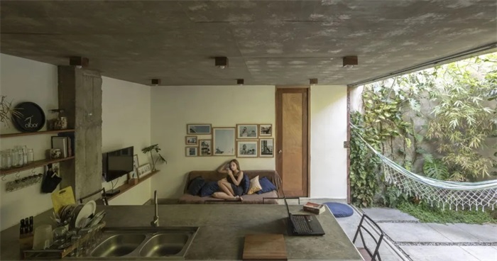 住宅的塔楼体块源自使房屋自带花园的设计诉求。从塔楼上俯瞰周边密集都市中心的景观风貌,从而以一种近乎天真的姿态与永恒的现实建立联系,至少不只是和当下有关。