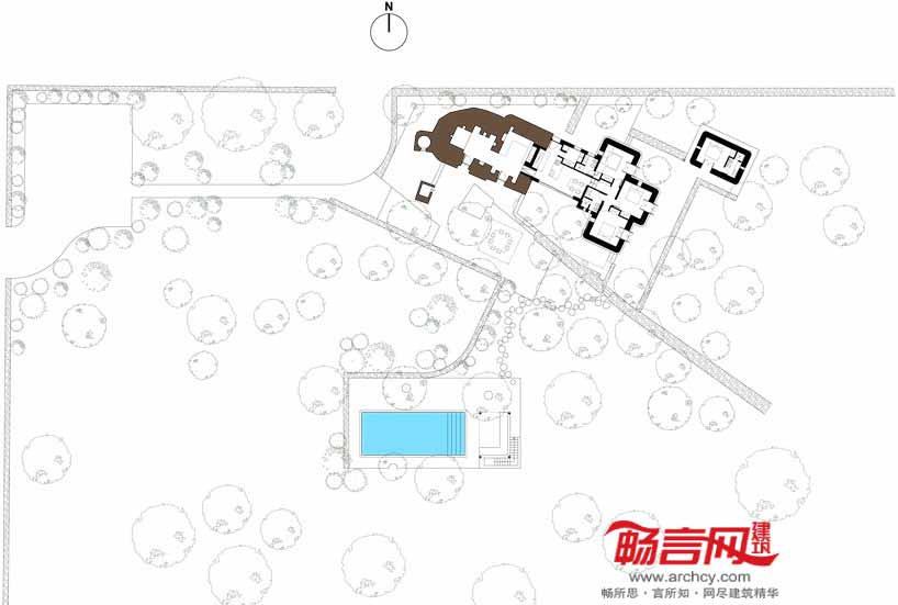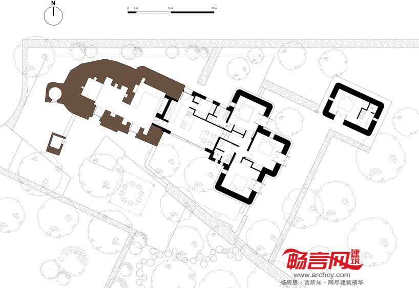 增建部分略微缩进并压低高度,与周围结构相连,大面的玻璃窗和门洞使光线进入室内,并将内部展示给外界。建筑材料和表面颜色具有一致性,实现了新老元素的顺畅过渡。砂浆涂层的地面和墙壁不仅统一了室内装饰外观,同时也反射了南面的阳光。摆放的极简家具和当地手工艺品平添了几许乡野氛围。