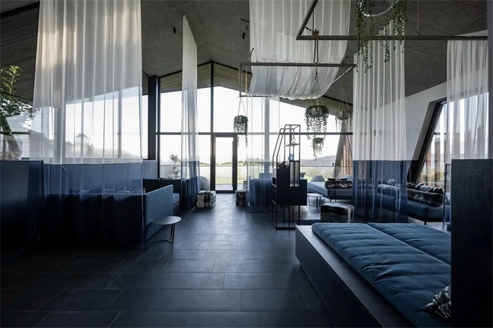 两座建筑在设计语言上也与既有结构建立了紧密的关系,传统的屋檐和倾斜的立面设计以现代的方式诠释了旧时谷仓的框架结构,使人们从不同角度靠近建筑时,能够获得变化的感受。独特的梯形窗户吸引着人们的目光,板条元素为建筑赋予了一个具有统一感的外观。