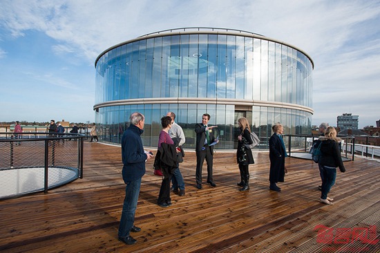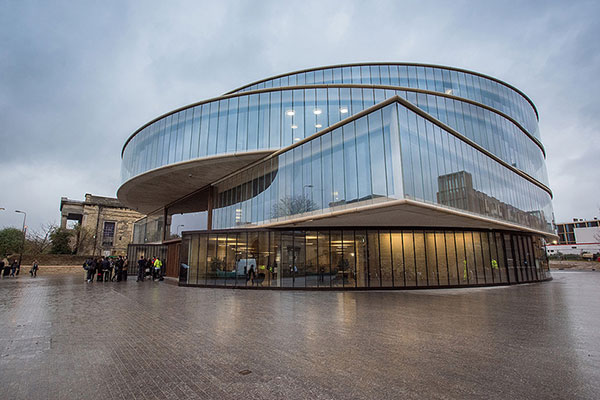 2012年成立起,牛津大学Blavatnik学院就拥有三个独立的校址。3年后,学院学生搬到了合并的校区中,建筑由瑞士赫尔佐格德梅隆建筑事务所完成,拥有圆盘形状的建筑结构。建筑主要容纳教学和学术空间,另外配有会议、行政、研究和服务设施。设计旨在促进讨论、互动与合作,方案围绕中央公共区域展开。这一开敞区域周围是教学空间,保证了演讲厅拥有自然采光,可用于展览、演讲和即兴节目。