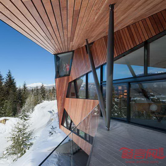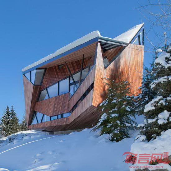 Patkau建筑事务所设计了位于加拿大英属哥伦比亚省的Hadaway住宅。项目坐落于俯瞰Whistler峡谷的山坡上,其尖尖的屋顶有利于将积雪导向场地内的存储区。建筑外形是对有限的占地面积和高度限制的直接回应。室内包含宽敞的起居室、餐厅和厨房,户外设有露台。屋面上的狭缝为屋内深处带来自然光照。