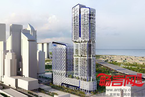 项目将包含两栋用于办公和住宅的塔楼——23层的办公楼与周边建筑规模相匹配,而53层的住宅楼则与其他建筑大相径庭。建筑的一楼大厅将大楼与街景连接起来,并提供了明亮的接待区和宽敞的咖啡厅;一个空中花园占据了整个第八层,人们得以拥有360度全景观赏城市天际线的机会,并且能在葱茏的绿洲里愉快地休息或休闲;住宅楼内还有另外两个空中花园,仅面对大楼住户开放,具有净化空气的功能。