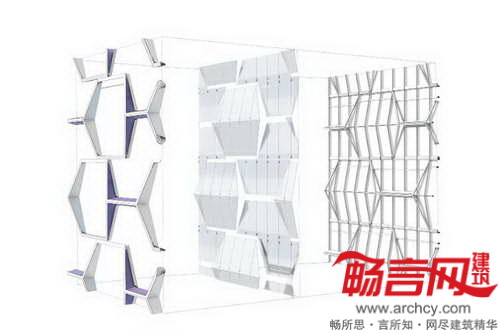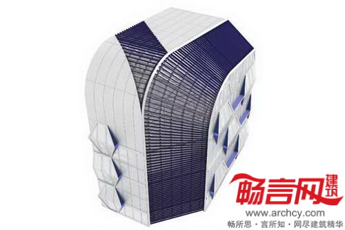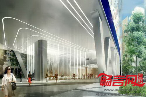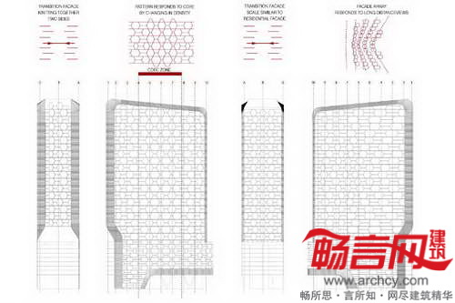 建筑立面图形包含四五种不同材质,立面玻璃可以通过侧向照明形成纹理图案。预计项目将于2016年完工。
