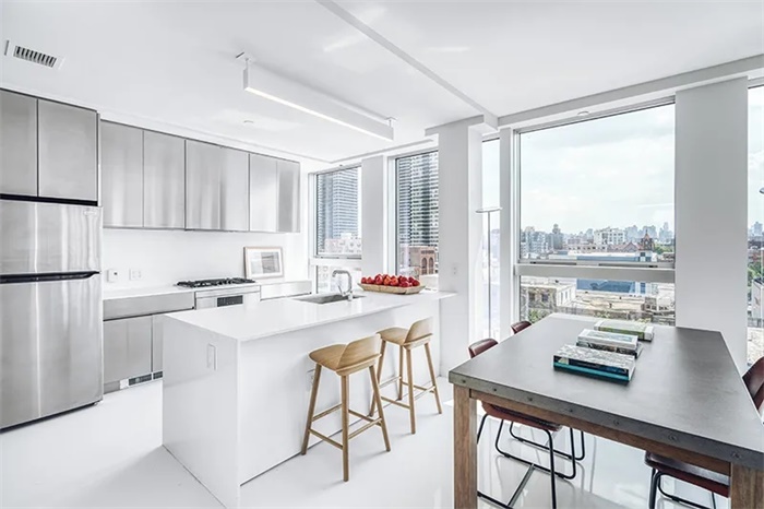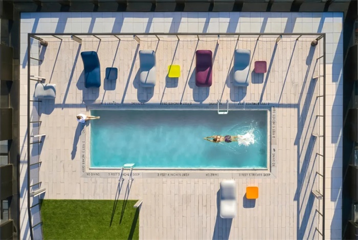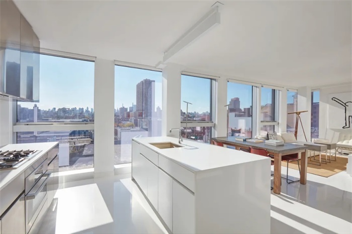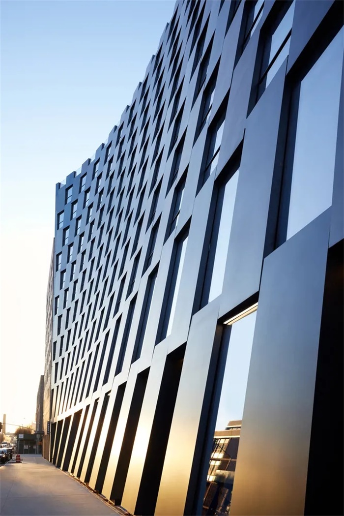 The Smile 公寓的233个居住单元里,有三分之一预留给了经济适用房,用于缓解纽约高房价高房租的紧张局面。黑色纹理金属板与透明落地窗相互交织,组成了BIG非常喜欢的棋盘立面,为租户创造了更加开放的城市视野。三个朝向分别可以可以俯瞰东哈莱姆区(EastHarlem)的中央公园、哈莱姆河(Harlem River)和布朗克斯区(Bronx)的北面景观。