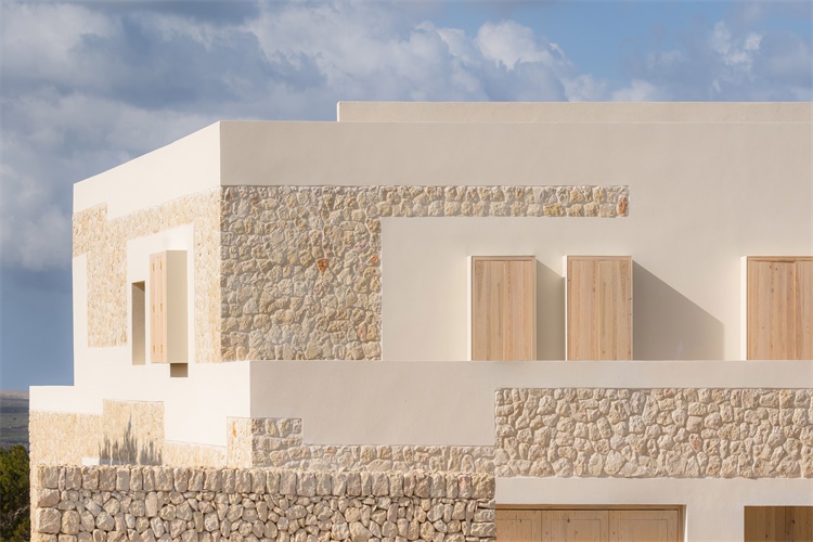 巴塞罗那Nomo工作室设计了位于西班牙梅诺卡岛的新建住宅。项目就地取材,利用地基上开采的石灰岩材料和光滑的抹灰构成了外立面。设计师Karl Johan Nyqvist表示,石屋设计的强烈理念是在于外立面构造和材料的选用;在参考传统岛内建筑的前提下,不希望成为简单的复制品。