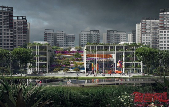 Series建筑事务所公布了一项中标建筑方案,计划在新加坡东北方的榜鹅区建设名为绿洲平台的综合设施。项目面积24700平米,当地公司Multiply参与了设计,提供多种公共娱乐设施和服务,预计将于2017年竣工。项目试图通过连贯的绿色元素,使建筑同景观紧密结合。场地中央的公共广场周围设有茂密的绿色平台,周边有城市水道。平台外围是多孔的结构,种植了花卉,提供公共服务功能。