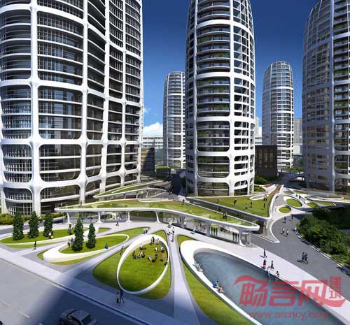 扎哈•哈迪德事务所设计的布拉迪斯拉法Culenova新城中心将于2013年竣工,届时项目无意会改变这座大都会的形象特征。围绕一家停用发电厂周围,多个环形建筑结构矩阵将方正场地划分出流线型道路。高耸的住宅和办公建筑楼高从中心向外围递进,中等高度的建筑结构非常适应人群规模。