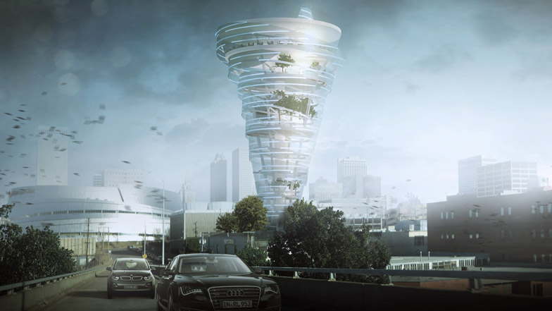 美国俄克拉荷马公司KKT完成了位于塔尔萨车库上方的摩天楼方案。项目灵感来自龙卷风,内部容纳了气候、风暴研究中心,涵盖顶层酒吧餐厅和草坪。夜幕降临,建筑灯光启动,周边来往车辆驾驶人会感到建筑如同正在旋转。KKT公司是受塔尔萨人民杂志邀请,做出这一区域复兴方案的。