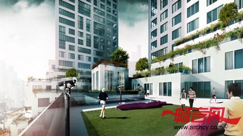 荷兰MVRDV在首尔设计了两座摩天大楼,两座大楼在半山腰处由一个云朵似的结构连接起来。
