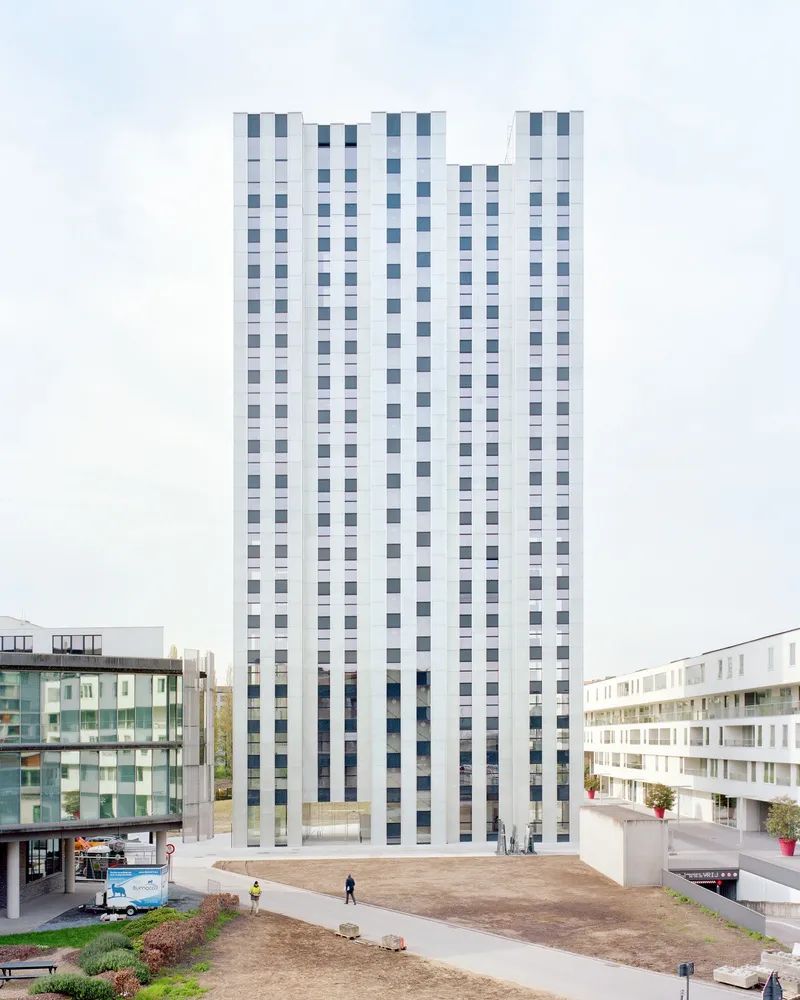 塔楼共 20 层,总高度 70 米,公寓面积 9000 平方米;这座地标建筑由并列和偏移的棱柱组成,不仅突出了体量,还向周围提供了广阔、多样化和开放的视野。