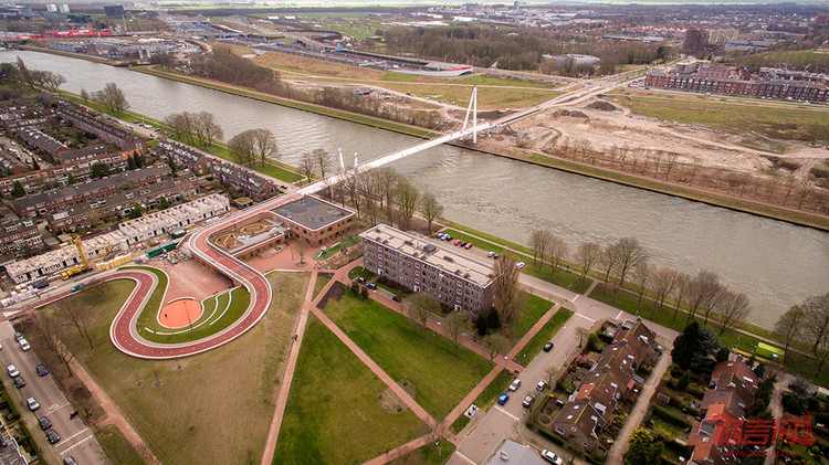 DafneSchippers大桥,俗称“欧米伽桥(Ω桥)” 位于乌得勒支,横跨阿姆斯特丹莱茵运河,于2017年4月3日开放通行。欧米伽桥是受乌得勒支市委托,由NEXT 建筑事务所与Rudy Uytenhaak建设局共同设计,并与Arup 和 B+B局协同打造的获奖作品。这个桥梁非常具有创造性:整个结构将一个循环和步行桥与学校和公园相结合,形成一个统一的具有凝聚力的空间。多重功能的土地使得最大程度地增加了绿化空间使得 Ω桥 变得独具吸引力,使它成为了一个具有活力的目的地。