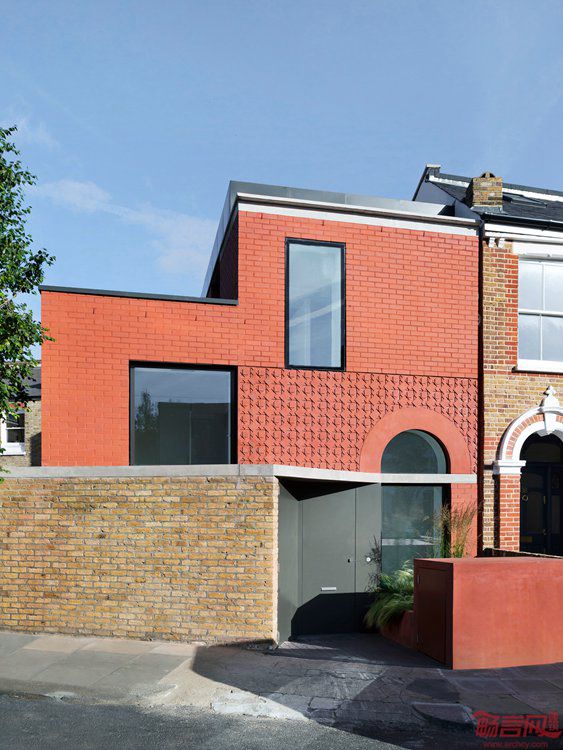 这座位于伦敦南部的房屋与周边维多利亚时期的建筑形成了反差。红色住宅位于一列排屋的尽头,得名于其红色的砖砌外立面。设计向传统砖砌建筑致敬,同时融入了当代风格。项目包含三个起居空间和一个开放式的一层,面积不大,却很实用。中央庭院和小后院为狭长的空间带来自然光照,同时不影响住户的私密性。