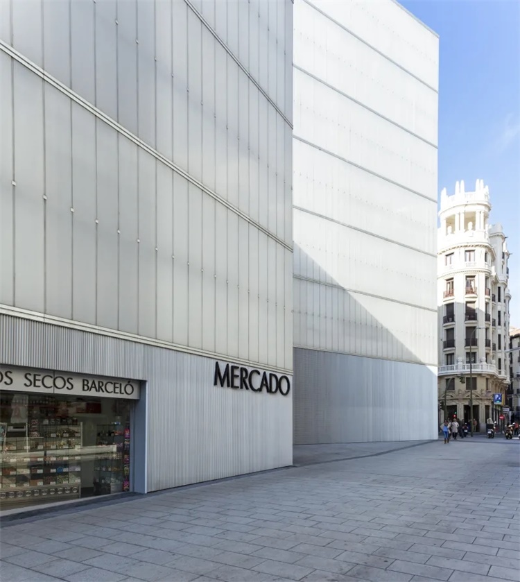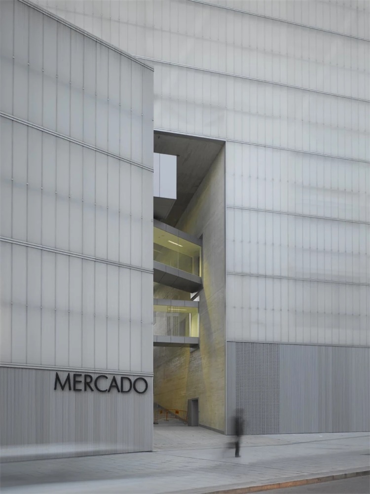 马德里Barcelo市场包括公共空间、临时建筑和装置设施。紧凑的市场,顶部设有城市体育馆。市场前方是矗立在校园上方的悬挑图书馆。Nieto Sobejano Arquitectos建筑事务所假设了三个同时存在的概念:容器、框架、桥梁。通过处理结构变化,如空间框架、悬臂梁、横梁,产生不同的城市空间:有顶棚的街道、细长广场和突出的露台。组合矩阵中,功能需求、结构系统和城市空间的平衡体现了项目的密集和混合性质。