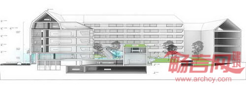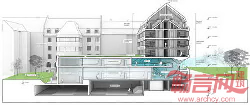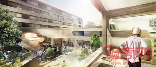 Graft工作室被委托设计德国最具历史的青年旅馆扩建项目。项目位于慕尼黑,中标方案基于“体验式社区”理念,建筑设计考虑了旅行传统、青年人的好奇心以及遇见同伴的渴望,创造出促进交流沟通的空间。建筑主要入口将迁移到Winthirplatz广场,入口设置了一面巨大的弧形玻璃立面,将人们引领到二层高的大厅和室内庭院。室内区域的中庭、餐厅和会议室融为一体,建筑将当地建筑方法和高科技元素结合起来。综合体项目可同时容纳相当可观的人数,营造出生气和谐、充满互动的氛围。