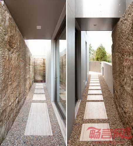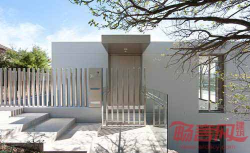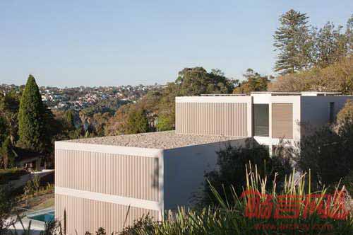 Boustred别墅由Ian moore建筑事务所设计,坐落在澳大利亚Mosman一处面北的悬崖上,较高的地势使人能在住宅俯瞰悉尼港。要想来到住宅的前门,必须先从街道上的人行天桥到二层。进入住宅内部后,住户会看到一个连通三个楼层的楼梯。长条形天窗结构将建筑分成两个部分,北侧包括生活区、卧室,而浴室、书房和服务区安排在南面围护型的区域内。